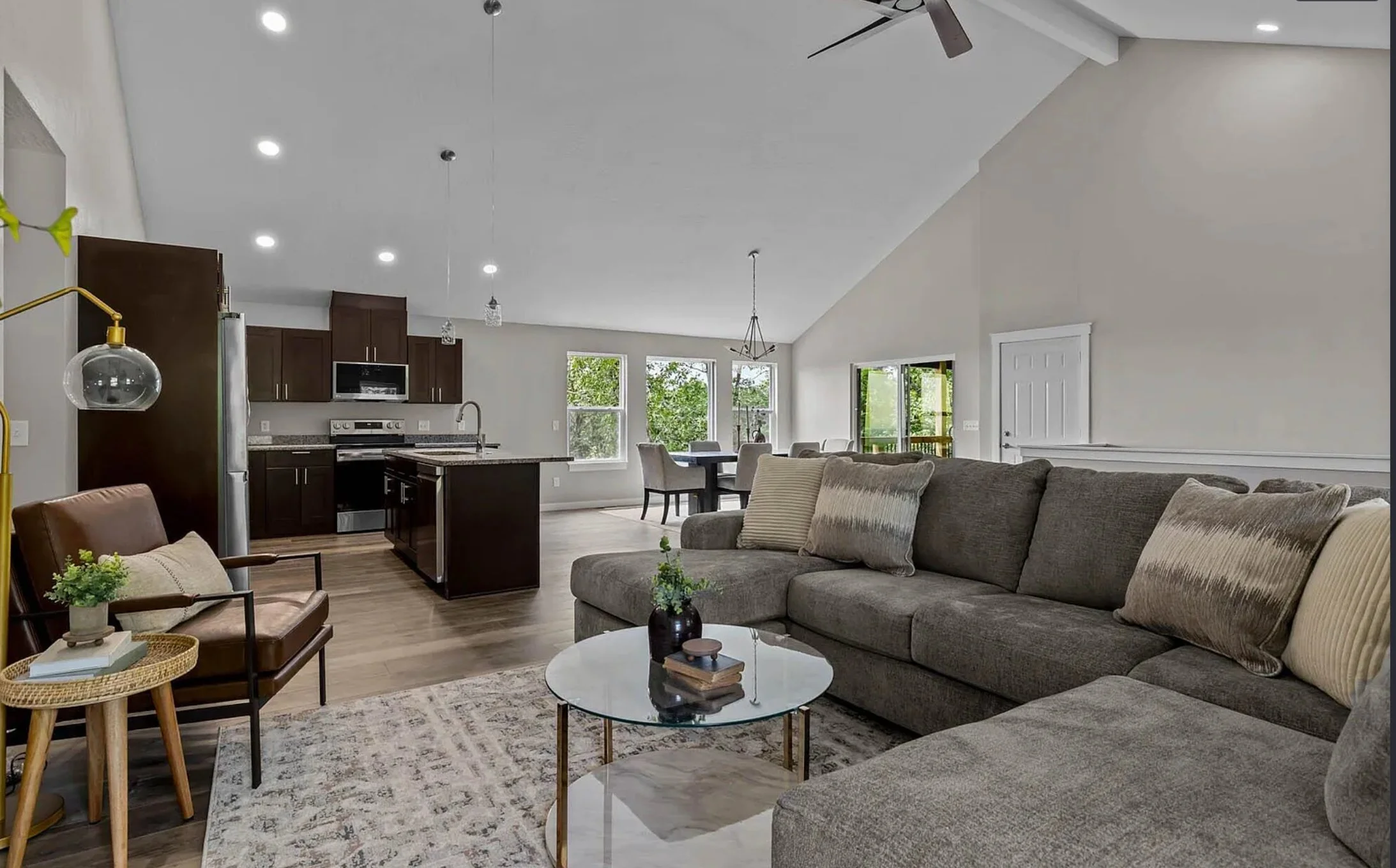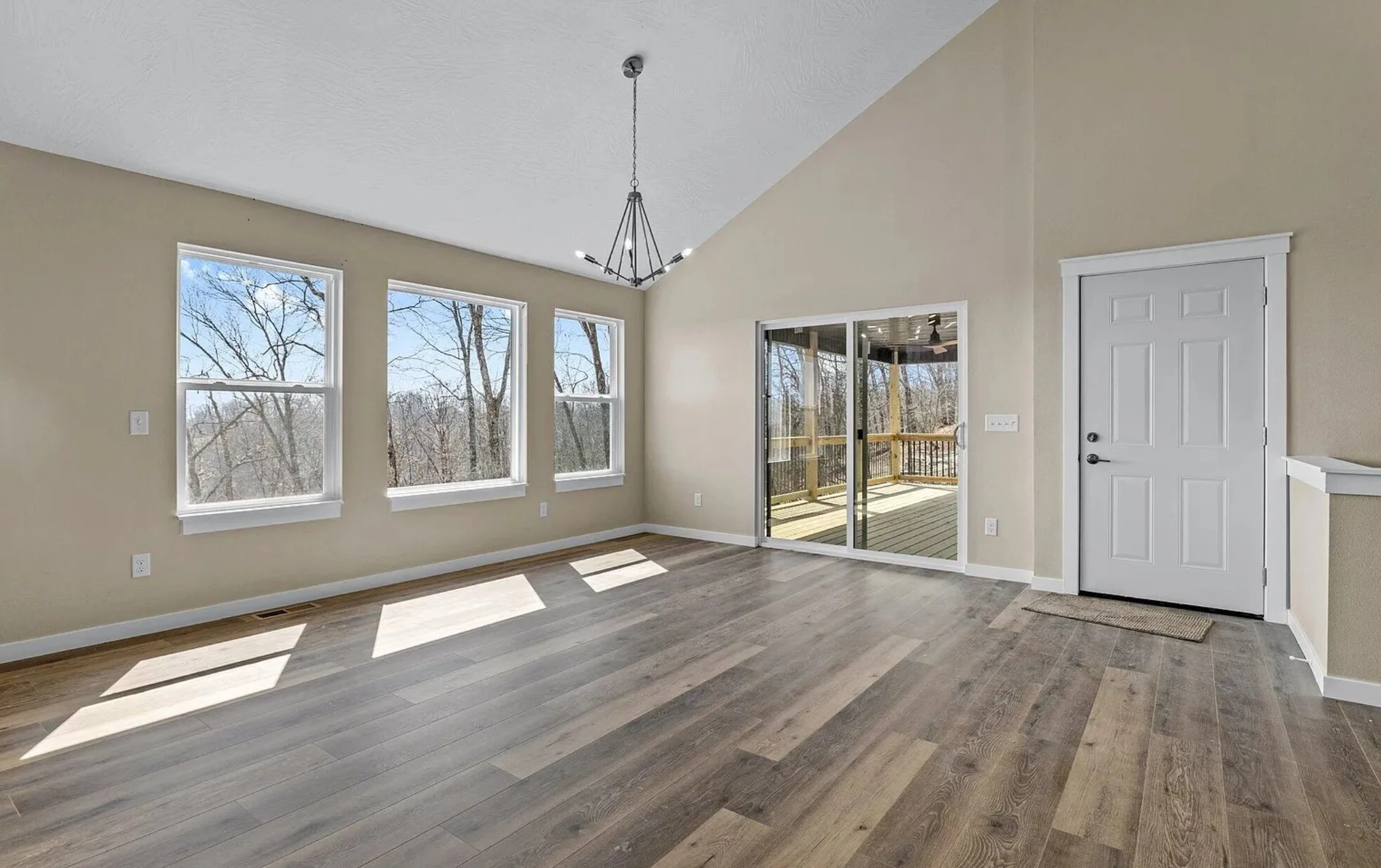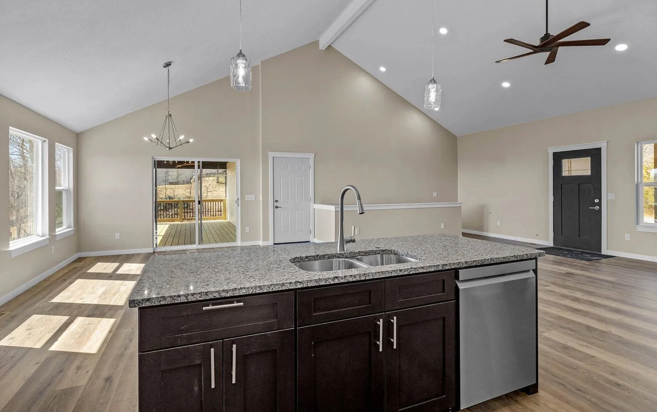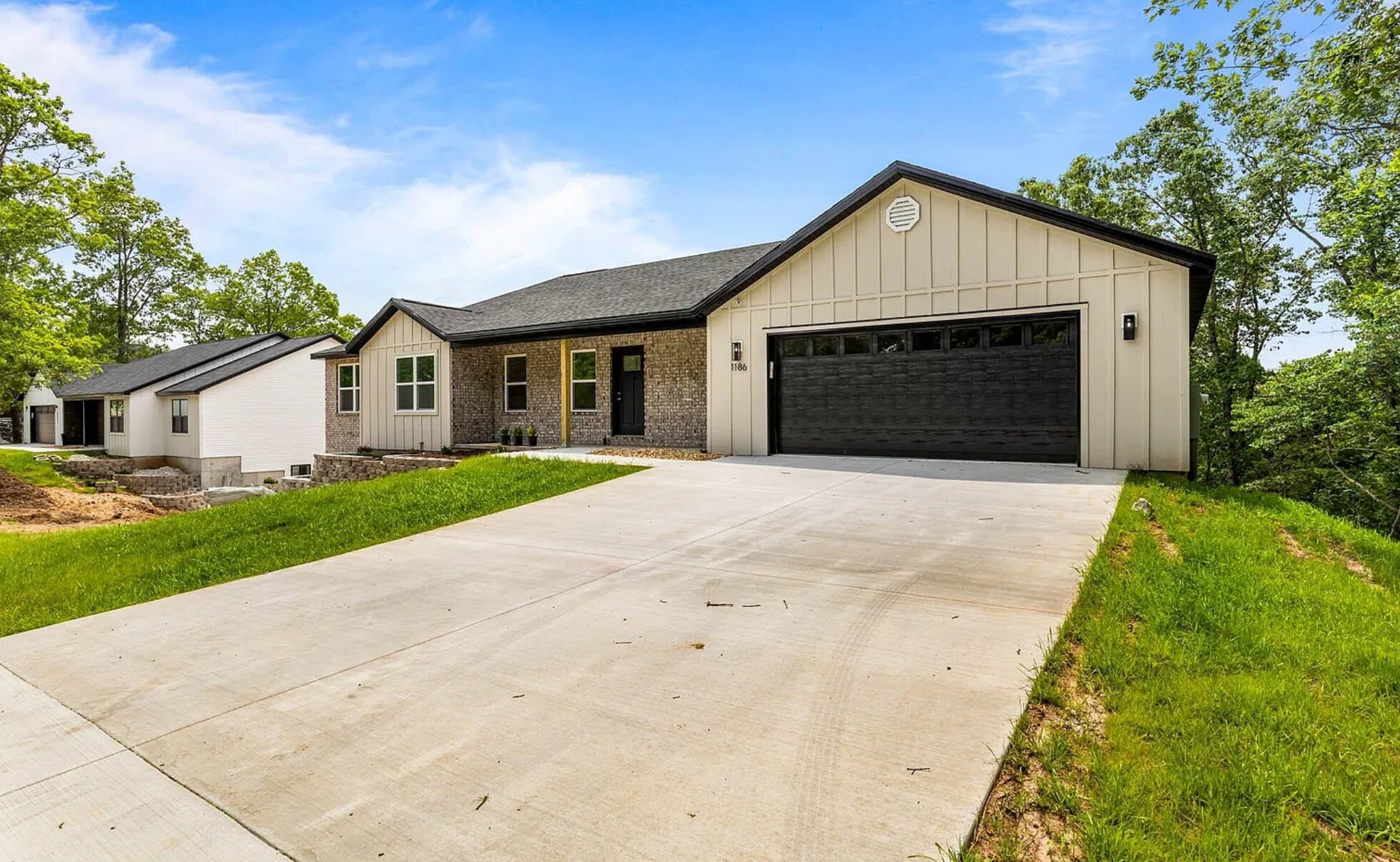 This stunning contemporary ranch style on 1+ acre offers modern comfort and timeless charm. The open family room features high ceilings and an electric fireplace, while the stylish kitchen boasts a walk-in pantry and central island. With 4 bedrooms, in addition to a Mother-in-Law suite with a kitchenette three bathrooms, and an oversized two-car garage, and an office. This home has it all! Extras include stainless steel appliances, security cameras, granite countertops, a Wi-Fi thermostat, and modern lighting. Enjoy the heated/cooled John Deere Room with storage and a storm shelter. Relax on the rear decks and take in the beautiful wooded views.