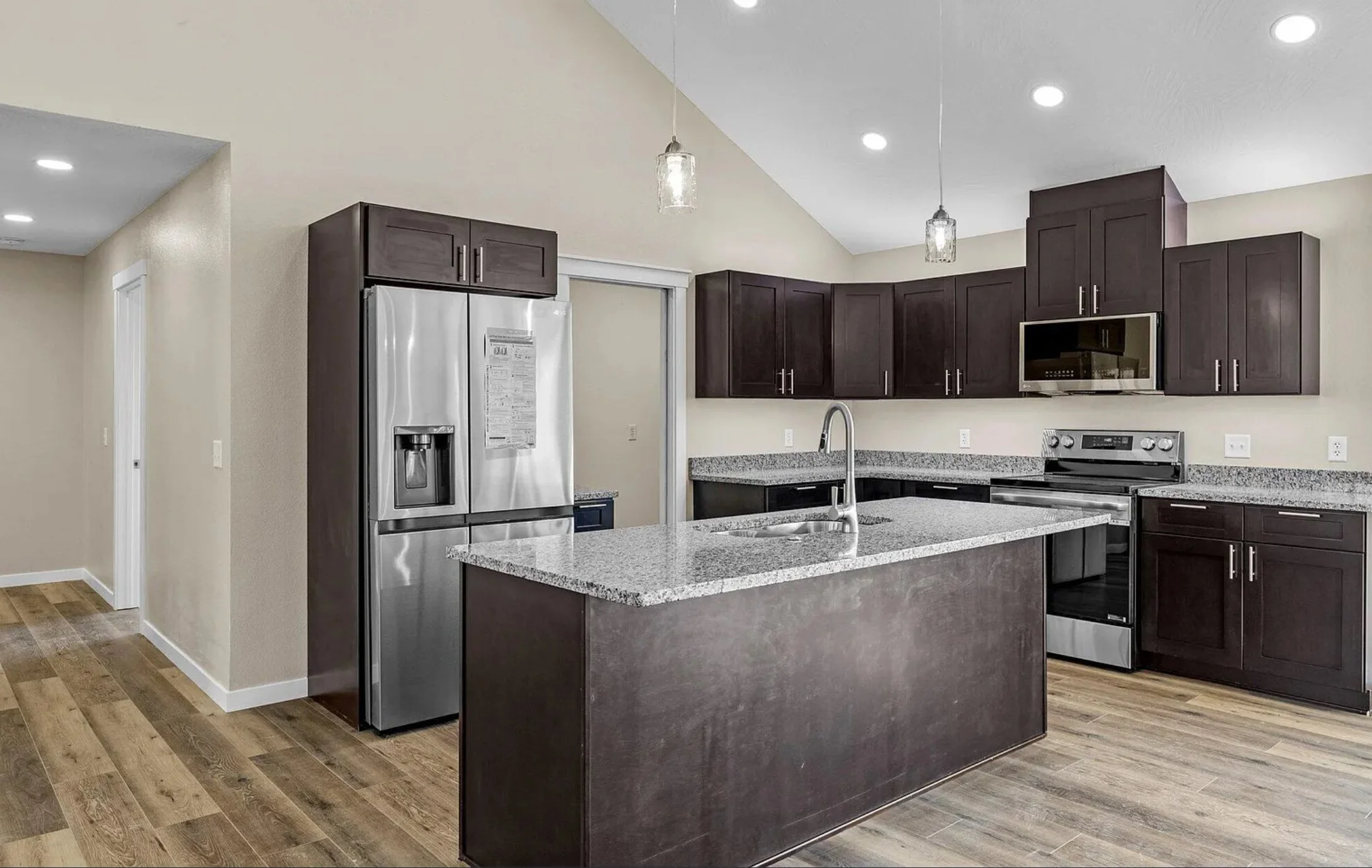 This stunning 4-Bedroom Home is almost finished! This beautifully designed home offers 4 bedrooms, 2 bathrooms, and 1,993 sq ft of thoughtfully crafted living space, all situated on a 1/2 acre lot. Enjoy the spacious 3-stall garage, durable laminate flooring throughout, and cozy electric fireplace. The home features 9’ ceilings throughout, 10’ in the living room, for an open and airy feel, along with modern white siding and black windows for sleek curb appeal. Entertain or relax on the covered and uncovered decks, and take advantage of smart features like security cameras. High-end granite countertops elevate the kitchen and bathrooms. Don’t miss out on this home schedule your showing today!